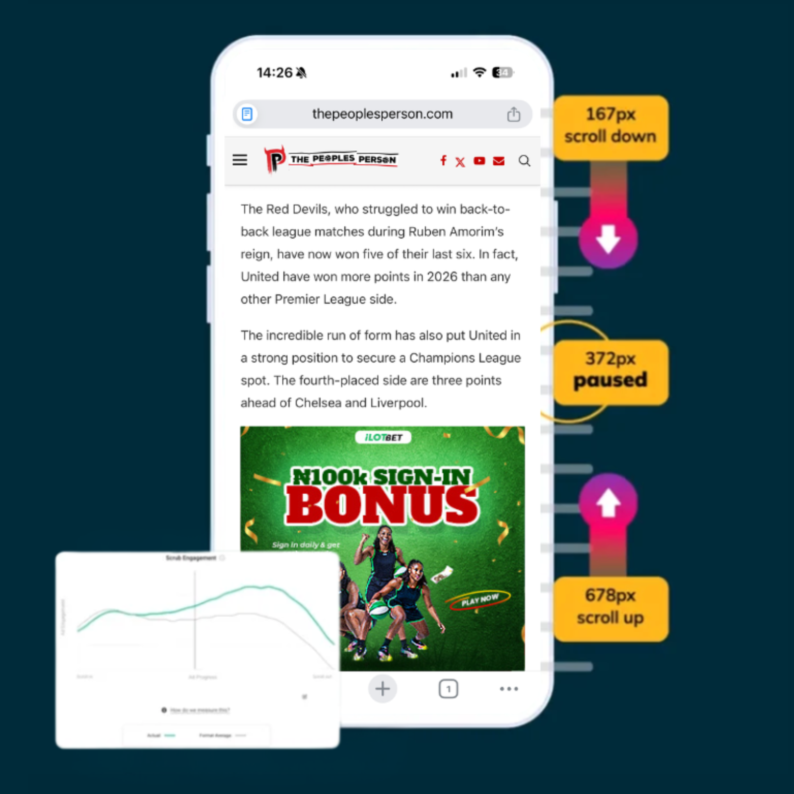 We track scroll depth, engagement pauses, and interaction signals to identify where users hesitate within the registration and deposit journey - enabling structured optimization that increases completion rates.